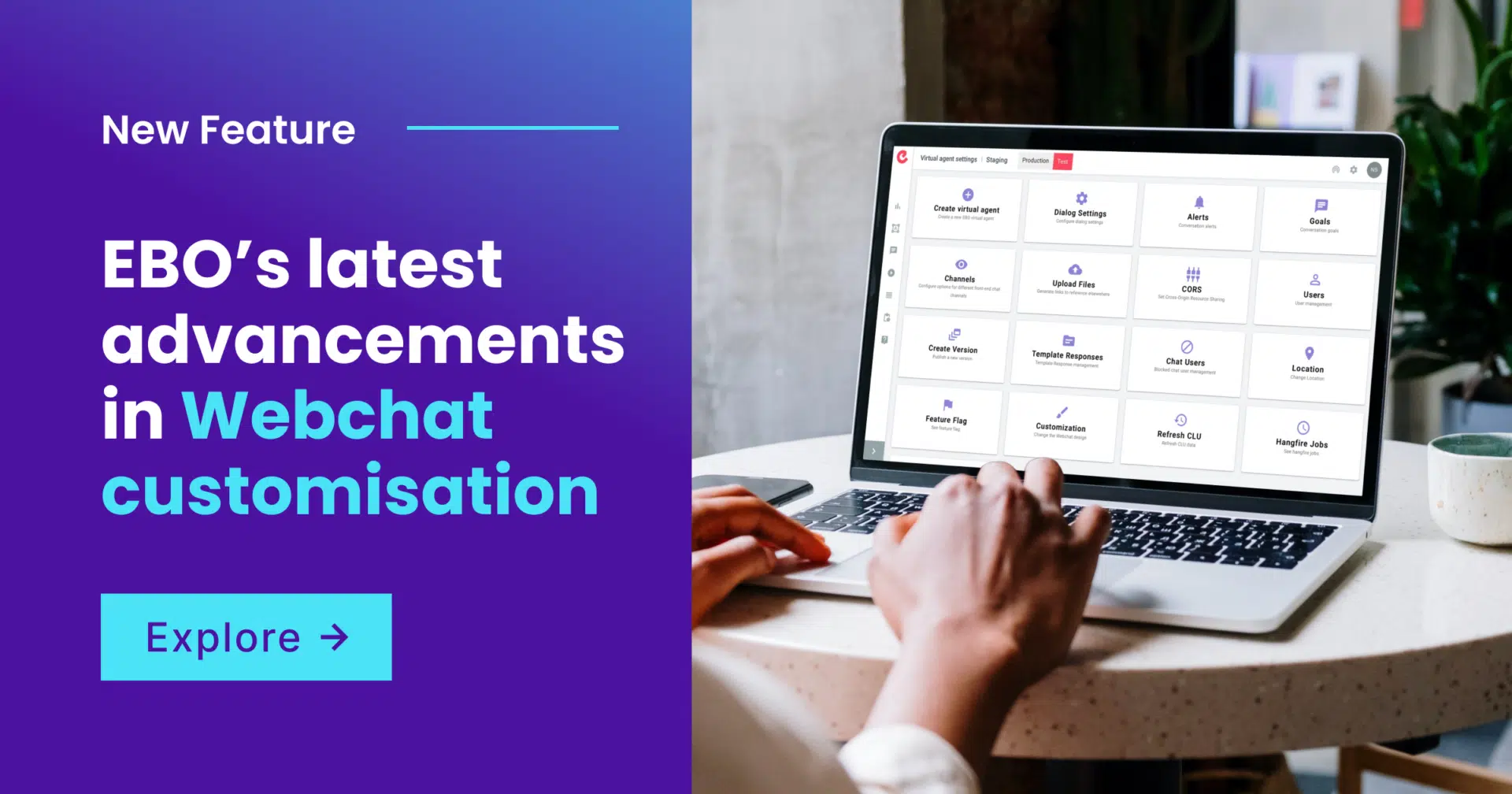 EBO’s web customisation tool now enables you to take control of the appearance of your Virtual Assistant webchat widget, without needing support from the technical team. You can change the webchat’s appearance so that it reflects the look and feel of your organisation as well as activate basic functions that appear within the webchat widget window. Making changes is as easy as ABC.