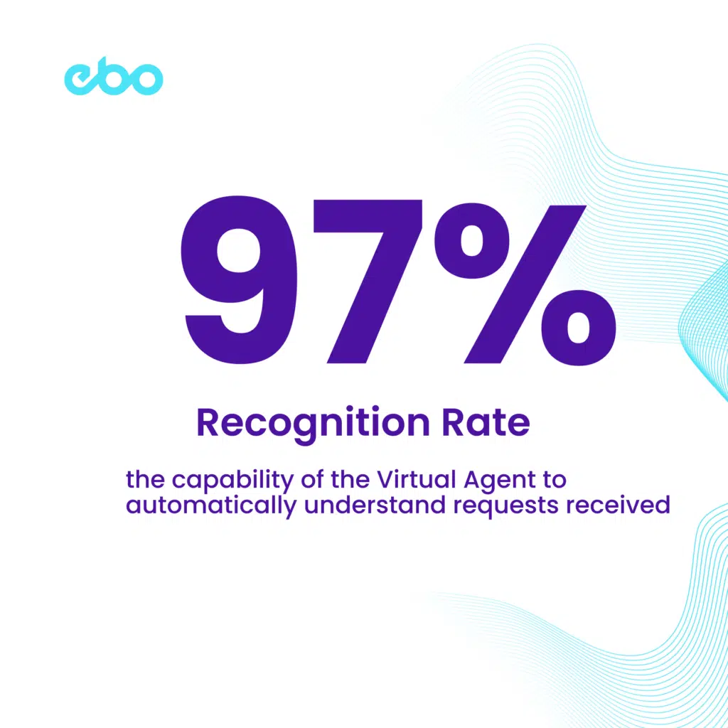 Beyond patient rating, EBO also measures the success of the VA through a recognition rate. This refers to the capability of the Virtual Agent to automatically understand requests received, without any human intervention. It turns out that In 2023, EBO’s VAs were pretty intelligent. They generated a recognition rate of 97%, allowing for automating requests to become a possibility.