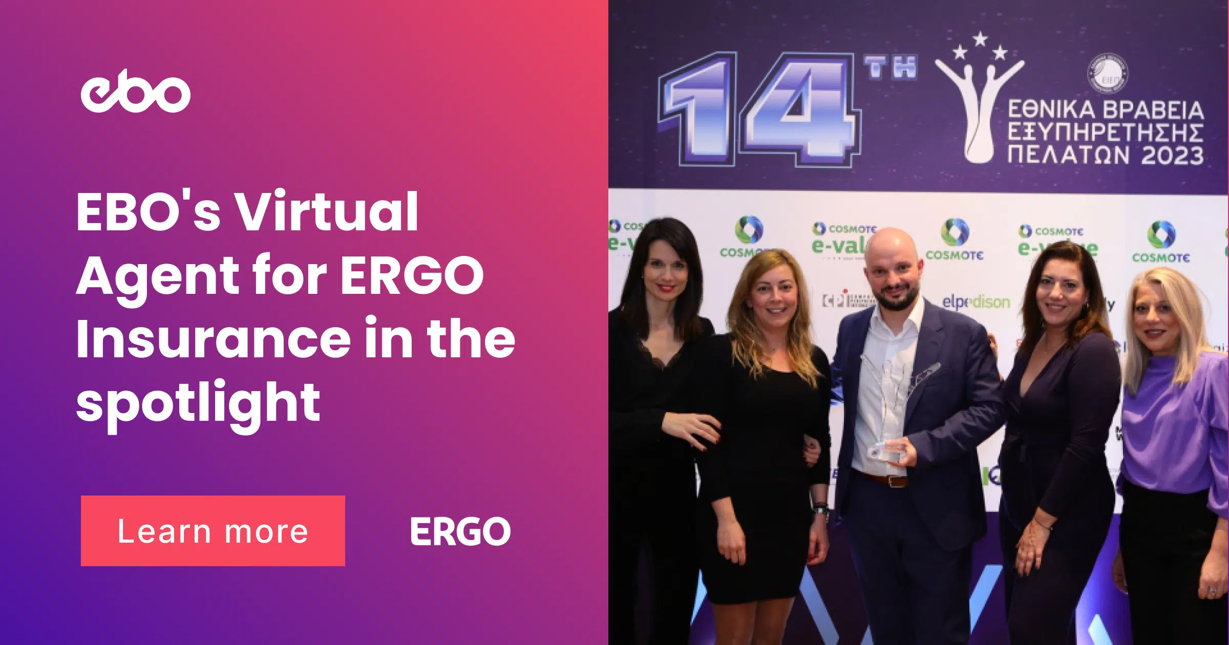 Following ERGO s successful win at the PPC Bite Awards EBO is proud to announce that its Conversational AI solution built for and in collaboration with ERGO Insurance has been awarded the prestigious Customer Service Distinction Award in the Best…