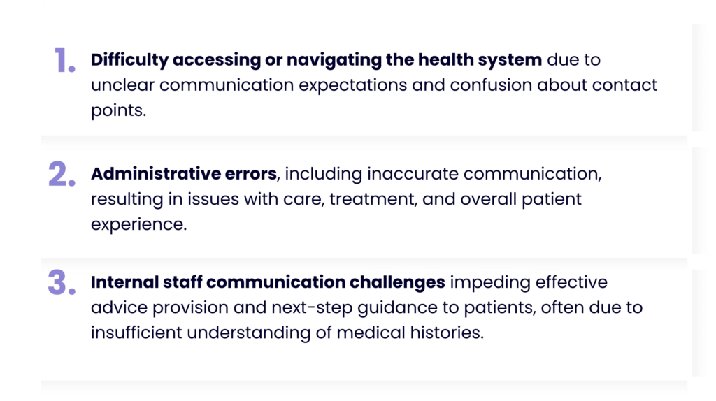 - 66% consider communication important in their care, but 41% are dissatisfied with communication from clinicians and staff.